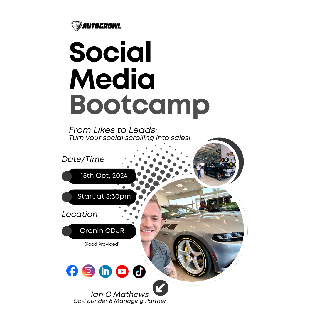 Social Media BootcampSign-In Below Name * First Name Last Name Email * Phone * (###) ### #### Position * Sales Service Finance Manager Other Dealership * Cronin CDJR Cronin Ford North Other Years in the Business * Less than 1 year 1-3 years 3-5 years 5-10 years 10+ years Thank you!